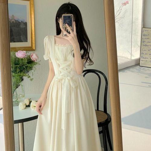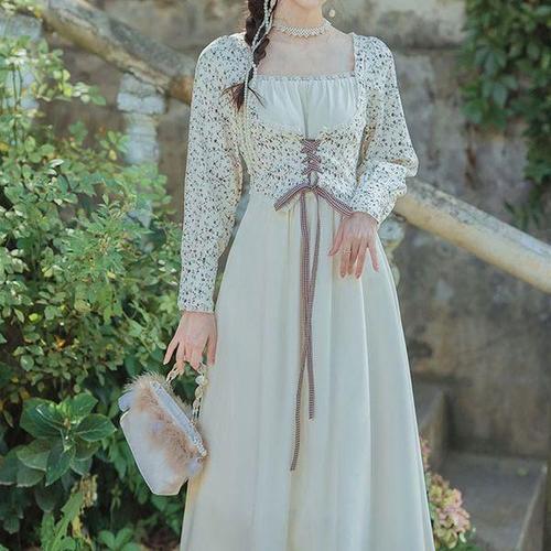 [지앤제이커머스] (대여) 크림 페어리 스퀘어넥 플라워 원피스 경성의상