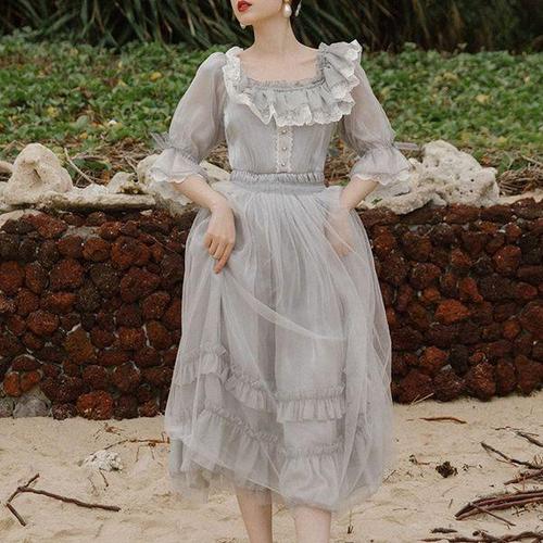 [에이치플러스몰]레이스 원피스 복고풍원피스 경성드레스 긴팔 경