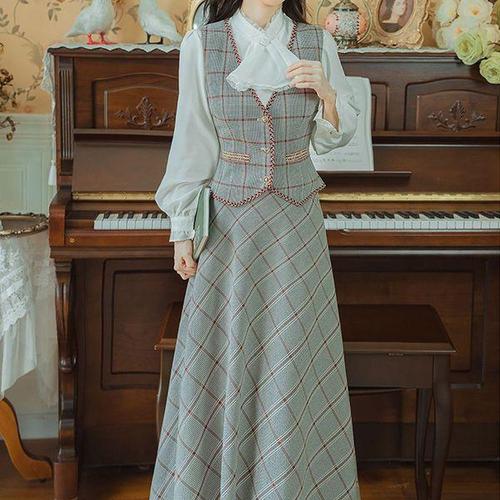 [에이치플러스몰]세트 3버튼 복고풍의상 상의치마 경성 복고풍원