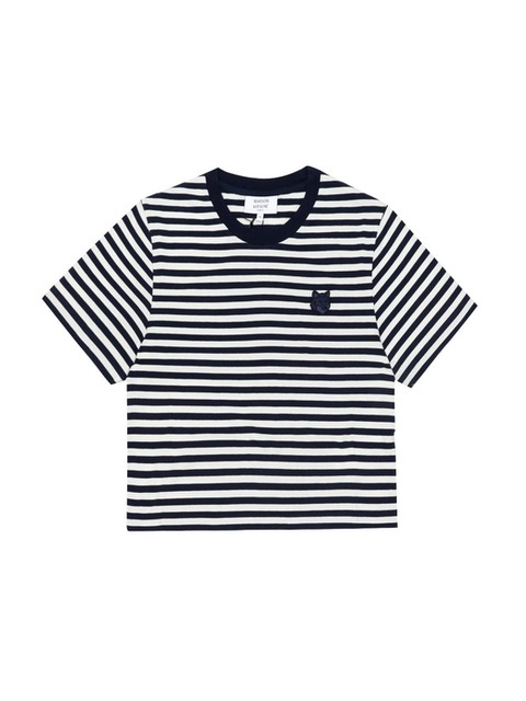 [메종 키츠네] 메종키츠네 OW00110KJ0008 0243 볼드 폭스 헤드 패치 멀티 스트라이프 여성 반팔티