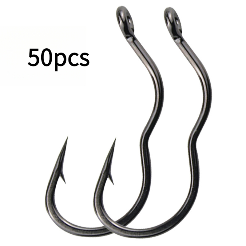 TEMU 50개 대량 튜브형 낚시 바늘, 미끄럼 방지 역전 3중 구부러진 바늘, 야외 낚시용