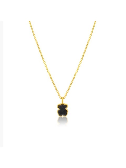 [토스] [TOUS] 18K 골드 버메일 실버 컬러 베어 모티프 오닉스 목걸이 1004225700