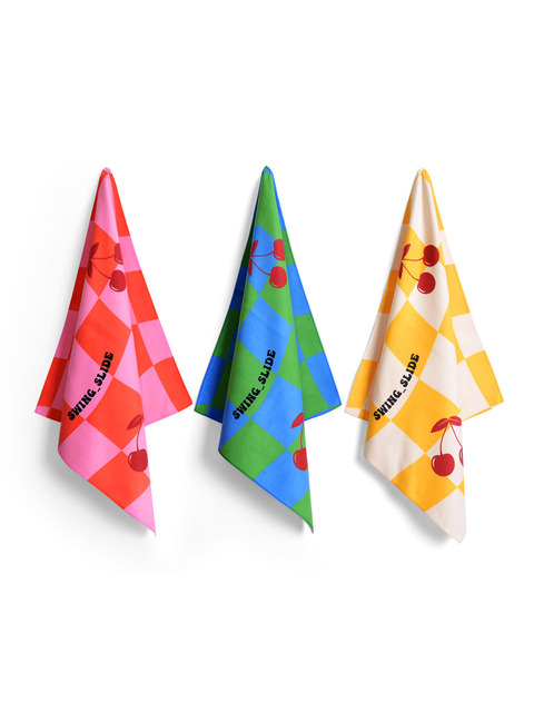 [스윙앤슬라이드] [미니타월] 체커보드 체리 고리타월