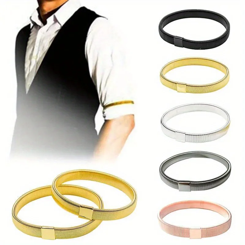 패션 손목밴드 여성 셔츠 소매 홀더 메탈 암밴드 홀드업 링 남성 팔찌 탄성 후프 암밴드 1쌍