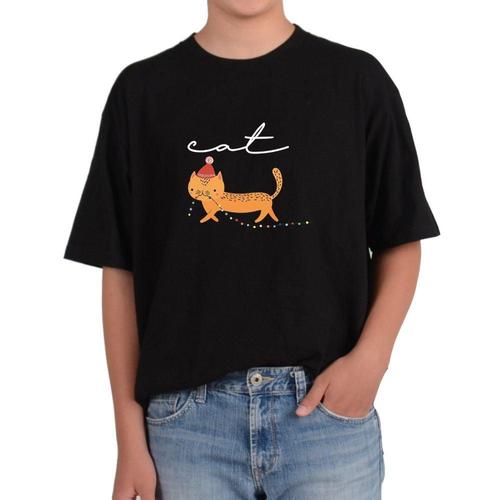 반팔라운드 고양이 산타모자 줄눈불빛 그림 전사이즈 WFIX59Q