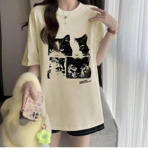 [셀러허브_여성트랜드패션]ONM 여성 고양이 집사룩 여리여리 여름 코디 반팔 티셔츠