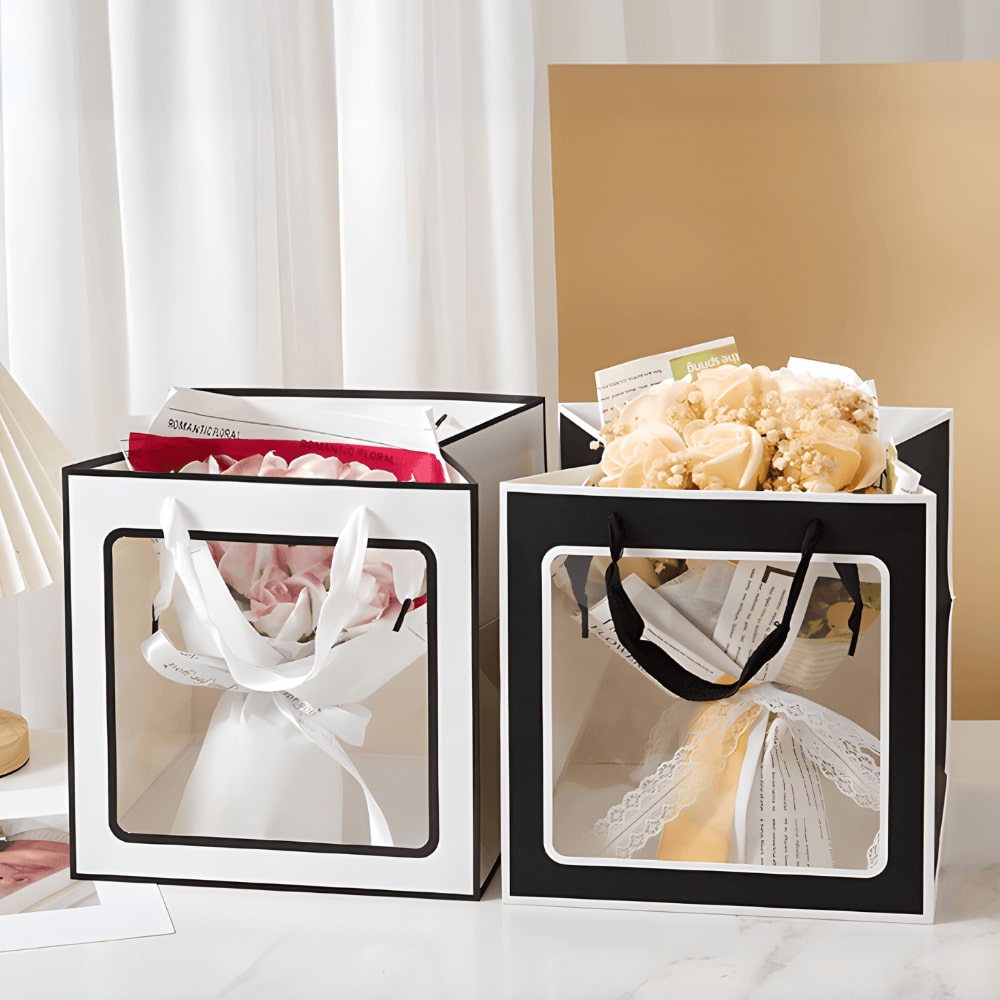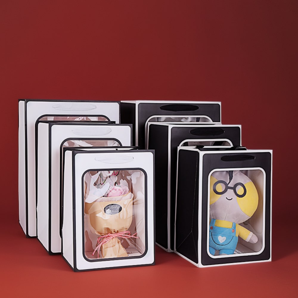 TEMU 고품질 투명 PVC 보관 상자 - 찢김 방지 및 휴대용 디자인, 크리스마스 선물 포장용, 손잡이 포함 - 39인치 롤에 적합, 블랙 크리스마스 및 휴일 선물 가방에 완벽한 선택