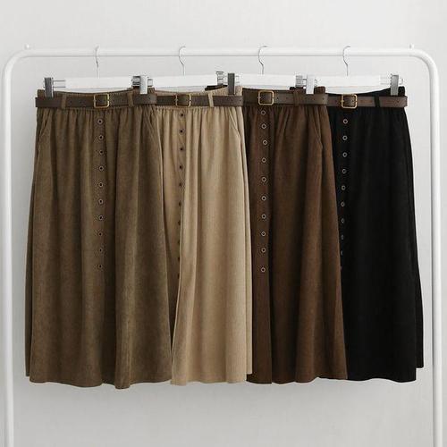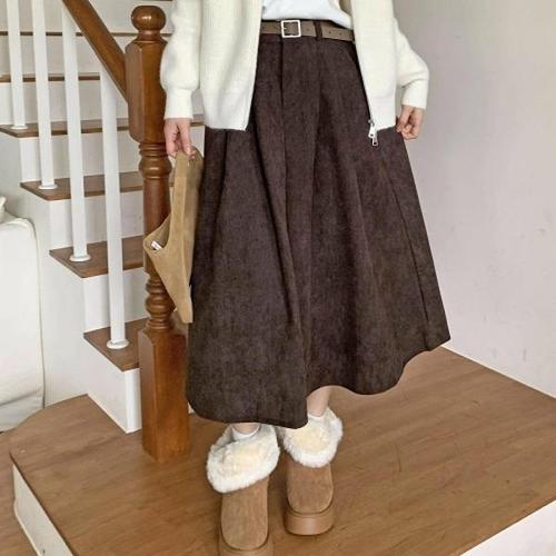 옷자락 / 여성 골덴 벨트 플레어 롱스커트 가을용 A라인 스커트