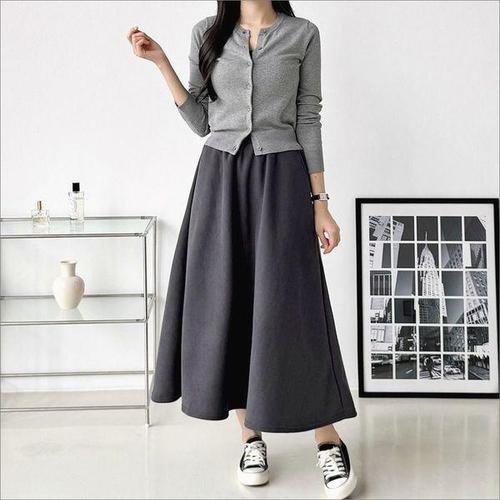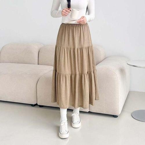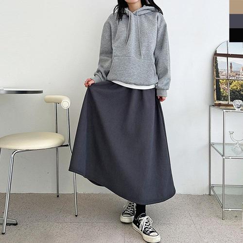 [에이치플러스몰]골덴 캉캉 롱스커트 여성 데일리 베이직 치마 패션 롱플레어 허리밴딩
