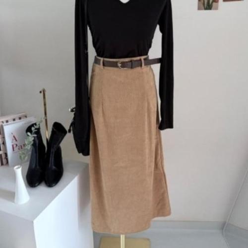 [다잇템][다잇템] 여성 골덴 롱 하이웨스트 혁대 치마_24675523_588872