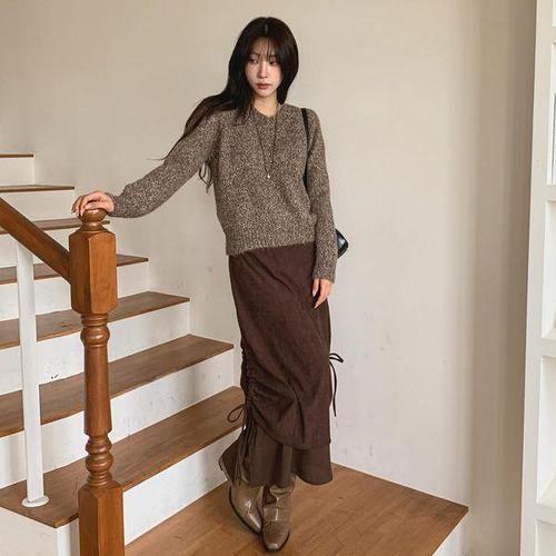 [다잇템]여성 치마 골지 골덴 롱 베이직 셔링디자인