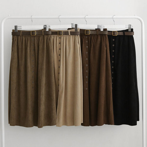 [옷자락] 여성 골덴 벨트 플레어 롱스커트 가을용 A라인 스커트