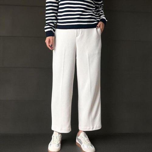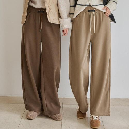 가을겨울 여성용 도톰한 기모 와이드팬츠 밴딩 스트라이트 코듀로이 일자핏 보온 방한바지 간절기 양털 긴바지