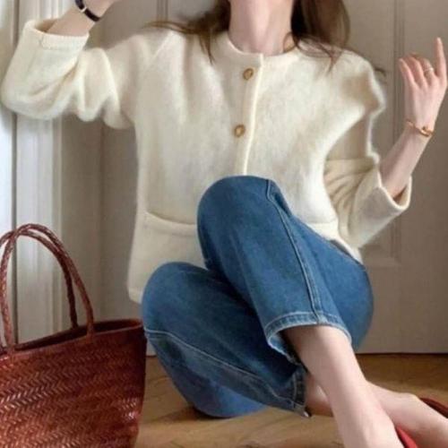 [신상오픈런]여성 울혼합 스판 골드버튼 절개 니트 카디건