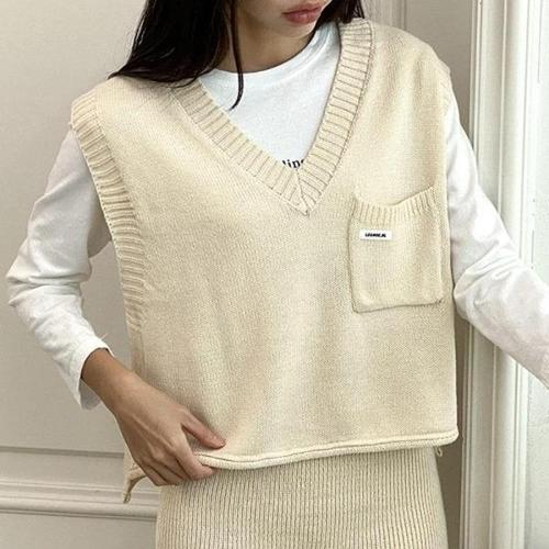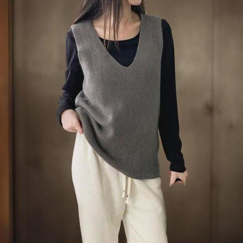 [신상오픈런]여성 브이넥 니트 조끼 레귤러핏 잔골지 베스트