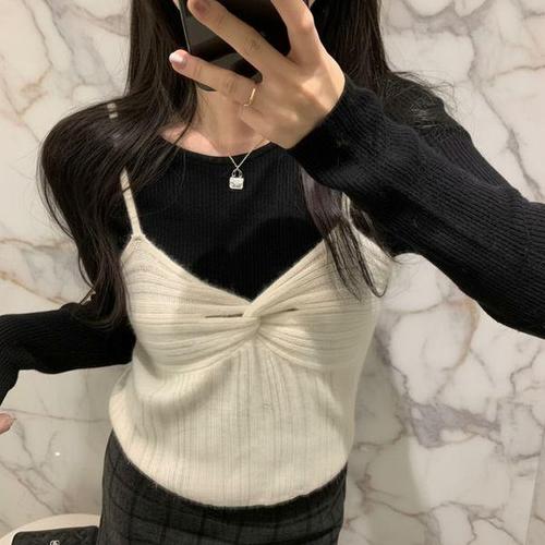 [신상오픈런]여성 골지 브이넥 레이어드 니트 베스트
