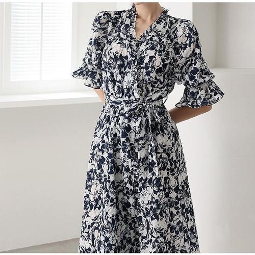 릴리 여성 홈웨어롱원피스 공주잠옷 꽃무늬 여름 끈 파자마 실내복
