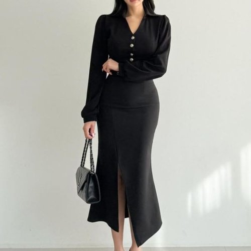 [다잇템]여성 롱 절개선 인어공주 치마 슬릿 디테일