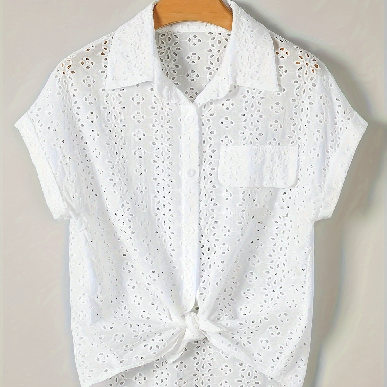 TEMU 플러스 사이즈 솔리드 버튼 프론트 셔츠, 봄 & 여름용 캐주얼 반소매 셔츠, 여성용 플러스 사이즈 의류