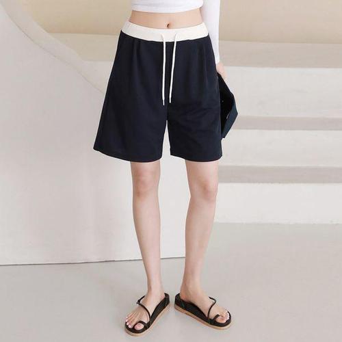 [유야]국산 허리 배색 골지 4부 5부 밴딩 반바지 -PN0561H- 빅사이즈 루즈핏 여성 여름