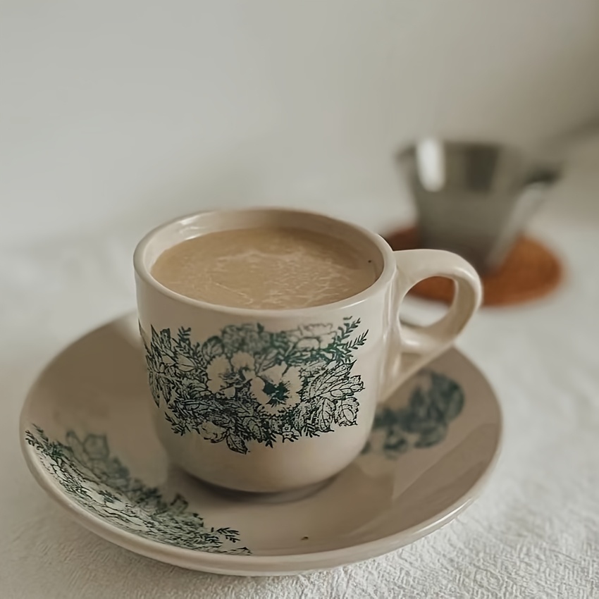 TEMU 2pcs 세트, 빈티지 세라믹 컵과 사우서 세트 동남아시아 스타일 이탈리아 커피 컵 홈 좋은 빈티지 프린트 세라믹 컵 정원 커피 컵 거리 코너 커피 컵