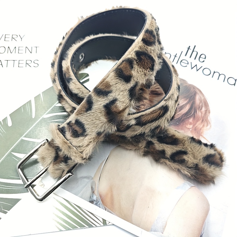 TEMU 고급 프린트 플러시 벨트, 스타일리시하고 다재다능한 와이드 럭셔리 컴포트 퍼리 벨트, 허리 사이즈 80Cm~95Cm / 31.49In~37.4In에 적합.
