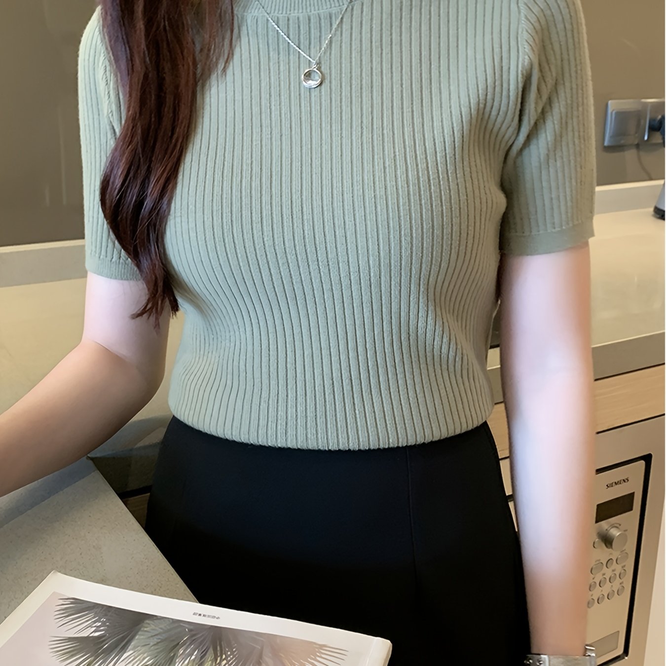 TEMU 우아한 여성 스웨터 | 스키니핏, 크루넥, 반팔, 단색, 약간의 스트레치 원단, 가을/겨울에 적합