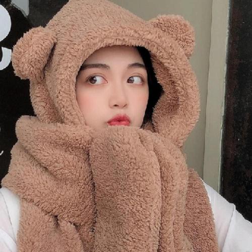 곰돌이 뽀글이 후드 모자 목도리 일체형 귀달이모자 WFG0SJP