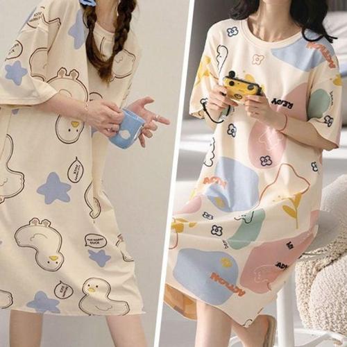 원피스 잠옷 여성 홈웨어 면 반팔 치마 여름 귀여운 이쁜 예쁜 (WFK61TW)