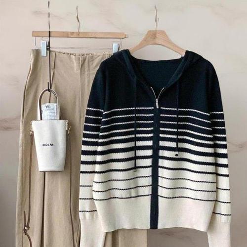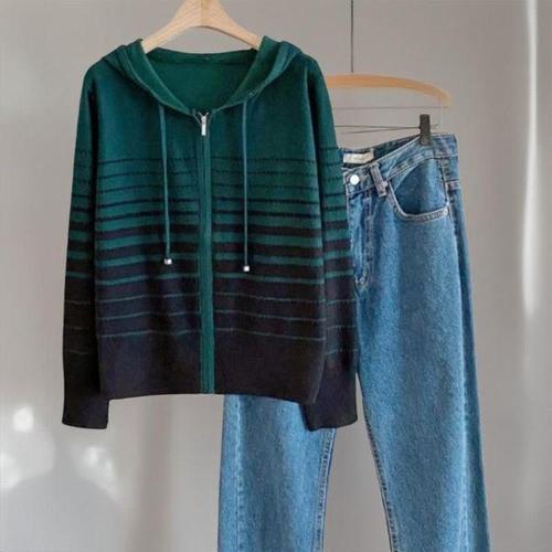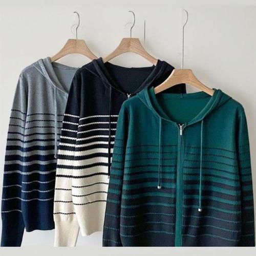 [신상오픈런]여성 그라데이션 스트라이프 집업 후드 니트 가디건