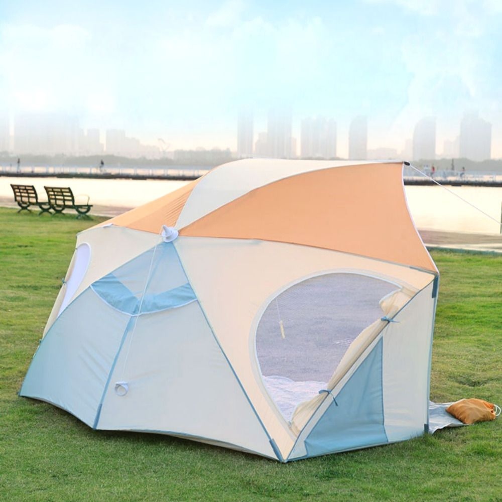 TEMU 가벼운 실버 야외 자동 팝업 텐트 (캠핑, 운전, 하이킹, 산악 여행용), 햇빛 가리개, 비치 텐트, 휴대용 접이식 쉘터