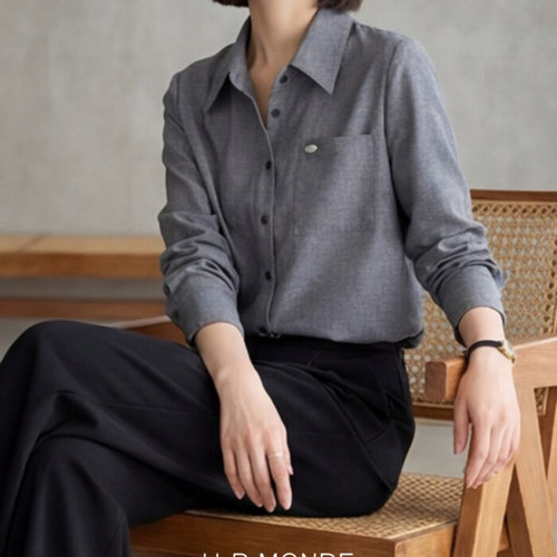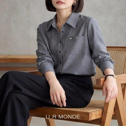 [유아몽드]프리미엄 그레이 스판 여성 카라넥 긴팔 셔츠 오피스