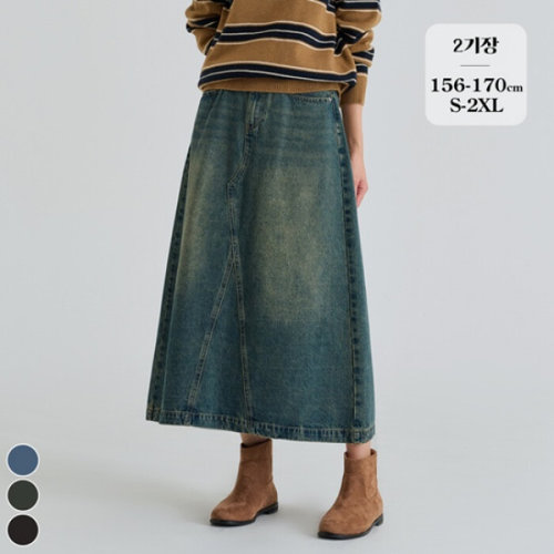 포레스트핏 / 2기장 A라인 밴딩 워싱 롱 데님 스커트(SK2508)