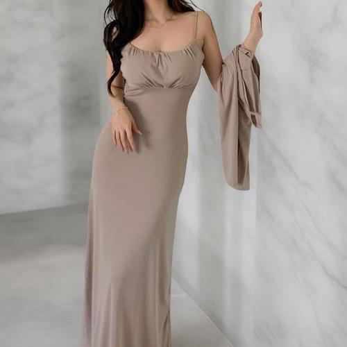 옷자락 / 여성 셔링 글램룩 슬림 스트랩 롱드레스 볼레로 카디