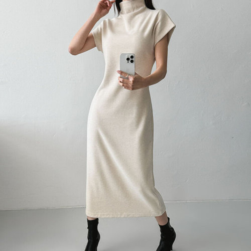 [옷자락] 여자 기모 목폴라 골지 반팔 슬림핏 등원룩 롱원피스