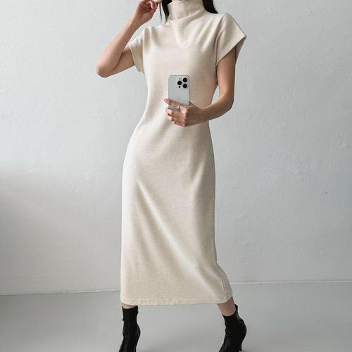 옷자락 / 여자 기모 목폴라 골지 반팔 슬림핏 등원룩 롱원피스