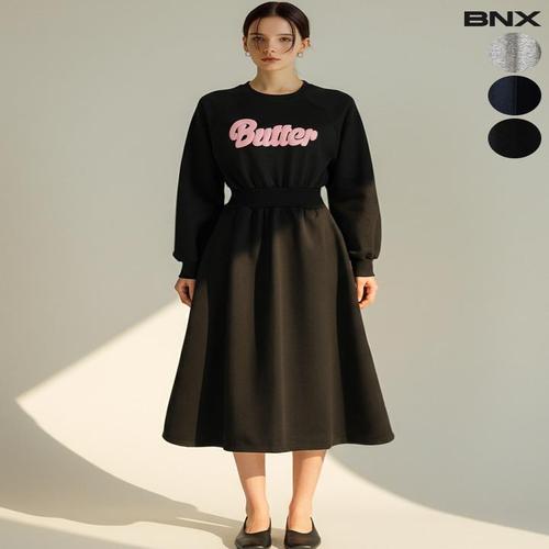 [비엔엑스]여성 기모 롱 맨투맨 원피스