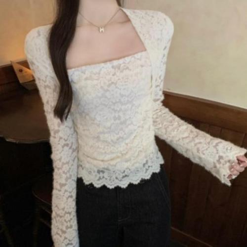 |CCH428B|여성용 기모 긴팔 레이스 크롭 블라우스 가을 겨울용