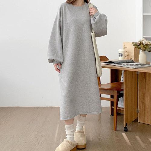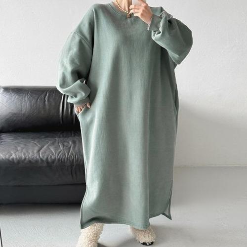 [옷자락]여자 볼륨 기모원피스 옆트임 박시핏 겨울 롱원피스