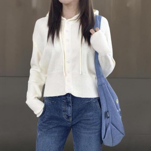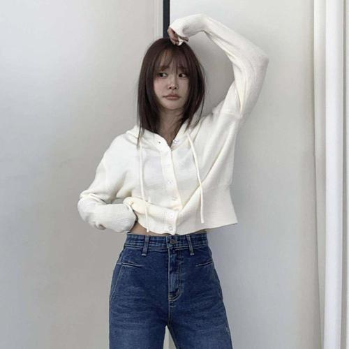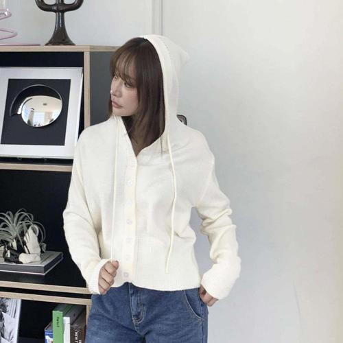 [신상오픈런]여성 기본핏 버튼 후드 니트 크롭 가디건