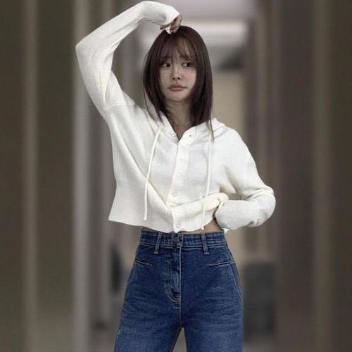 [신상오픈런]여성 버튼 후드 세미 크롭 기본핏 니트 가디건