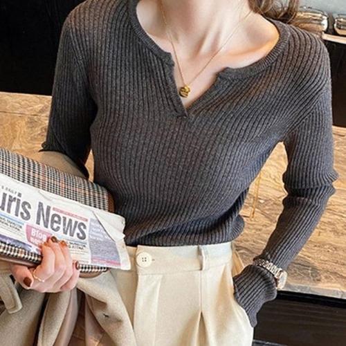 [아우트]V넥니트 긴팔 슬림 여성 기본 브이넥