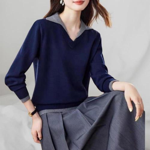 [신상오픈런]여성 클래식 색상 조합 브이넥 레이어드 기본 긴팔 니트