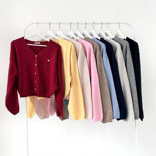[센트럴몰]V넥 버튼 니트 가디건 여성 기본 크롭 탑