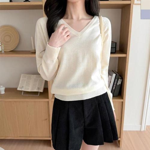 브이미나 골지 브이넥 기본 베이직 니트