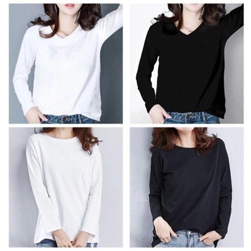 [엄지척]여성 기본 디자인 라운드넥 브이넥 긴팔 무지 티셔츠_19600636_667501