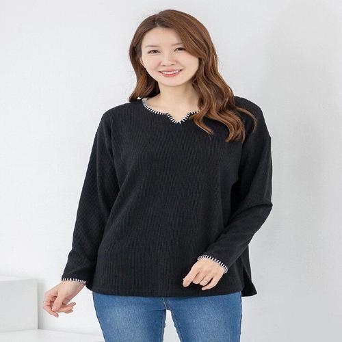 [모슬린]엄마옷 트임 라운드 골지 면 긴팔롱티 602FGH069 마담/중년여성/빅사이즈/50대/60대