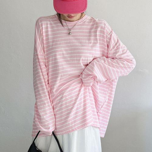 [유야]여성 스트라이프 옆트임 긴팔 롱 티셔츠 -FTS1100- 봄 가을