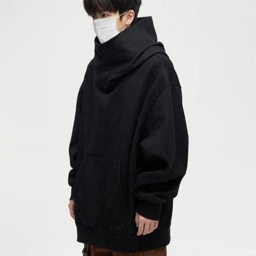 [에이치플러스몰]남녀공용 캐주얼 턱받이 하이넥 오버 긴팔 후드티셔츠