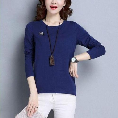[셀러허브_여성트랜드패션]여성 긴팔 캐주얼룩 사계절 흰티 봄 라운드넥 루즈핏 티셔츠
